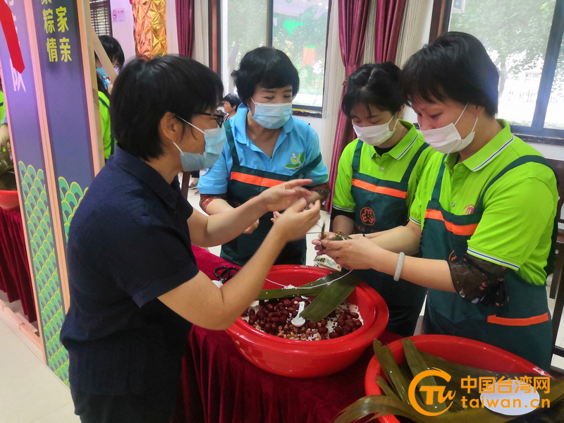 中国台湾网6月23日讯 端午佳节到来前夕,24位在沪台胞姐妹与48位崇明妇女姐妹今天喜约崇明岛,共同参加“崇台一家亲、花博聚‘粽’情”2020年“我们的节日”端午包粽友谊赛活动。