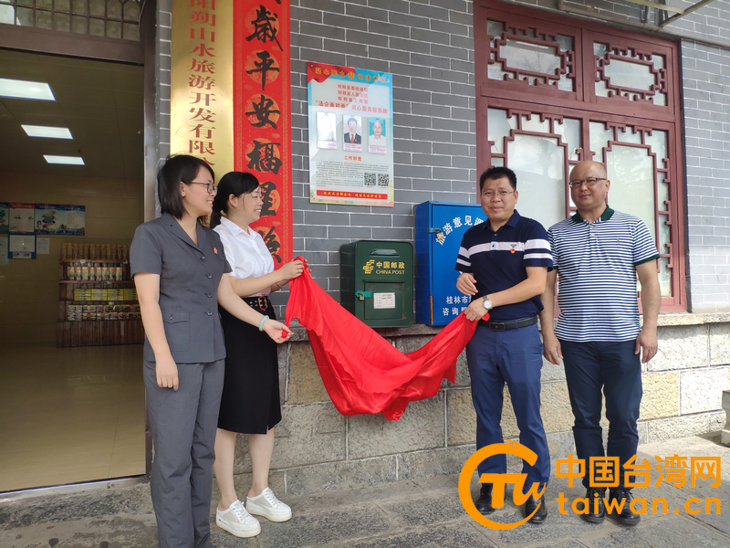桂林市阳朔县“法企面对面”同心服务联系牌揭牌。(图片来源:广西桂林市台办)