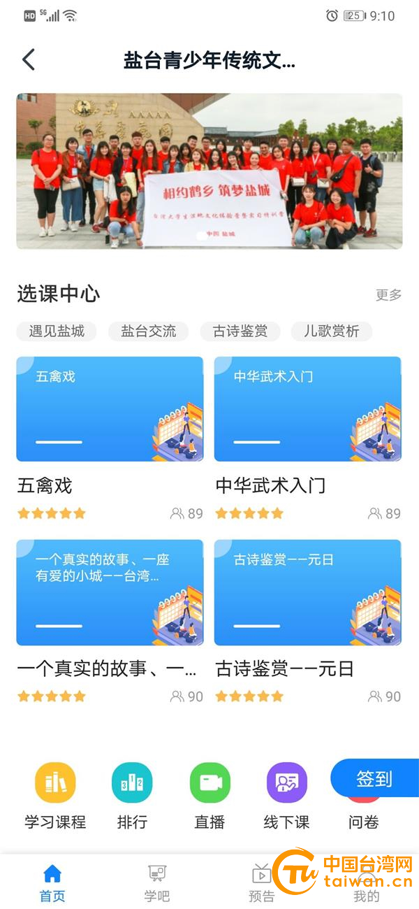 “云平台”分为“云课堂”、“台湾人在盐城”、“盐台青年交流”、“主题论坛”四大板块。“云课堂”开展中华古诗词鉴赏、武术、绘画、朗诵、书法等课程教学;“台湾人在盐城”分享台胞在盐城生活、学习、工作的故事,透过他们的视角,记录盐城的变化发展,记叙海峡两岸情感;“盐台青年交流”通过图片、文字、视频的方式整理总结盐台青年线下活动,叠加盐台青年交流效应;“主题论坛”:结合形势热点,设定各种讨论主题,让两岸青年畅所欲言,提升平台活跃度,激发创新创造思维。(中国台湾网盐城市台办通讯员 许颖)