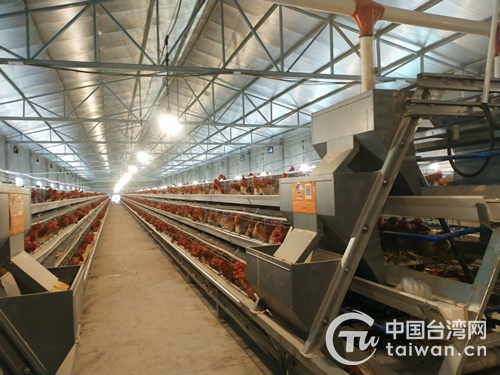 “这里的养殖模式和台湾的养殖场采用完全一样的养殖生产技术和经营管理方式。”廖本坤介绍说,这些养殖生产技术包括先进的自动控温控湿、自动饮水、自动送料、自动送蛋、自动分正次品蛋、自动包装等设备及可视监控管理系统等。