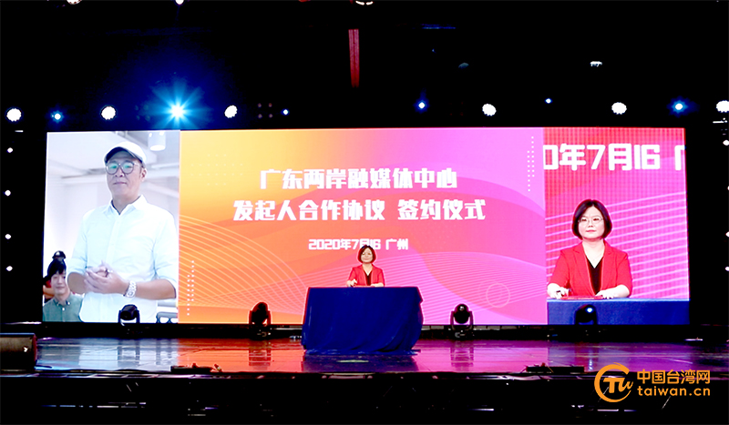 揭牌仪式上,粤台两地发起人在现场举行“云签约”仪式。(中国台湾网 普燕 摄)