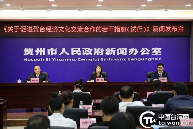 中国台湾网10月9日讯 9月27日,广西贺州市台办、贺州市发改委召开《关于促进贺台经济文化交流合作的若干措施(试行)》(以下简称“贺州76条措拖”)新闻发布会,介绍贺州出台惠及台胞措施情况。“贺州76条措拖”共6个部分76条。