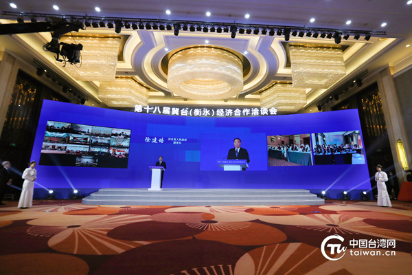 中国台湾网10月19日讯 10月18日,第十八届冀台经济合作洽谈会(线上)在河北省衡水市拉开帷幕。河北省人民政府副省长徐建培,全国台企联会长李政宏,衡水市人民政府市长吴晓华出席开幕式并致辞。国务院台湾事务办公室、省直有关部门、衡水市委市政府有关领导出席会议。大会在衡水设主会场,在台湾台北、花莲设分会场,中国国民党前主席、中华青雁和平教育基金会董事长洪秀柱通过视讯方式在分会场致辞,冀台600余人线上参会,21.5万两岸同胞通过线上直播观看了开幕式盛况。