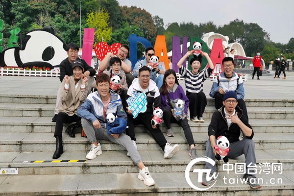 采访团“打卡”成都大熊猫繁育研究基地(图片来源:四川台办)