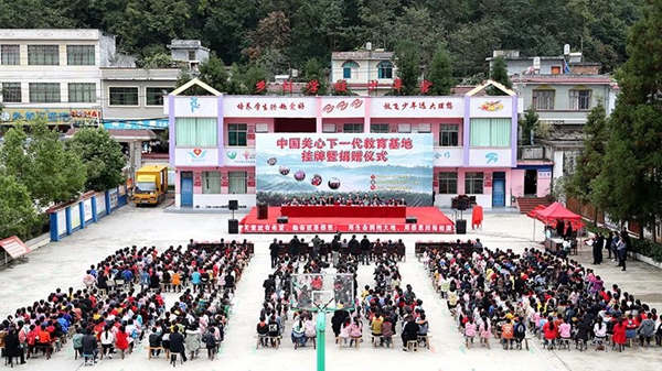 “中国关心下一代教育基地”挂牌暨捐赠仪式在贵州省兴仁市新龙场小学举行。(中国台湾网发)