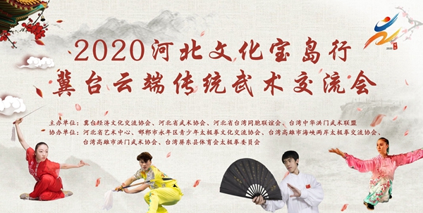 冀台云端传统武术交流会将设石家庄市和高雄市两个网络直播会场,设共演太极、线上敬师、名家讲堂、云端演武四个环节,集中展现中华武术文化武脉相传、花开两岸。2020河北文化宝岛行还将开展冀台武林采风活动,在台湾高雄市、新北市、宜兰县组织三站交流活动,巡回播放河北武术专题宣传片,将河北优秀武术文化送入岛内,同时,河北省邯郸、沧州等市民间武术协会将与台湾有关县市武术社团进行视频互动交流,了解双方传统武术文化传承情况。