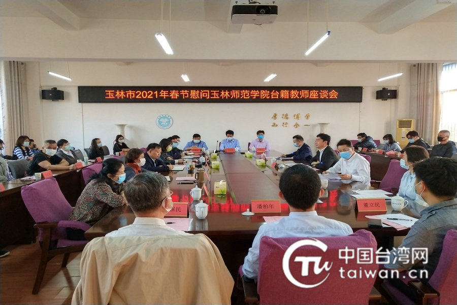 中国台湾网2月10讯 2月4日,广西玉林市市长白松涛到玉林师范学院慰问留在玉林过春节的27名台籍教师,到他们的办公室走访寒暄,与他们亲切座谈交流,代表玉林市委、市政府向所有在玉任教的台籍教师致以诚挚问候和新春祝福。