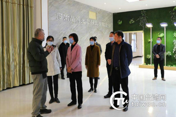 在河南晶鸿光电科技有限公司,驻马店市委常委、统战部部长姚新文深入了解企业运营和发展情况,详细讲解新冠肺炎疫情防控工作的最新要求,并代表党和政府送上节日祝福。姚新文表示,疫情期间全市台企台胞台属自发捐款捐物,支持抗疫工作,为抗击疫情做出了积极贡献。今年春节,对于不能回台湾过年的台胞,市台办、台联和各县区相关部门会加大关心关爱力度,确保广大台胞台属过一个安乐祥和的春节。