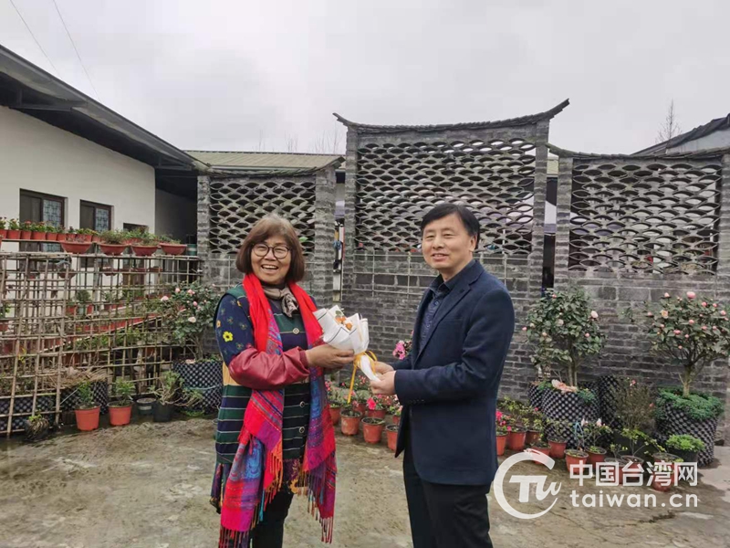 “祝你永远年轻!”在成都钧乔疯狂农庄,袁明向胡淑美献上鲜花,向她表示节日的问候,祝贺她成为四川省首获“三八红旗手”荣誉称号的女台胞。