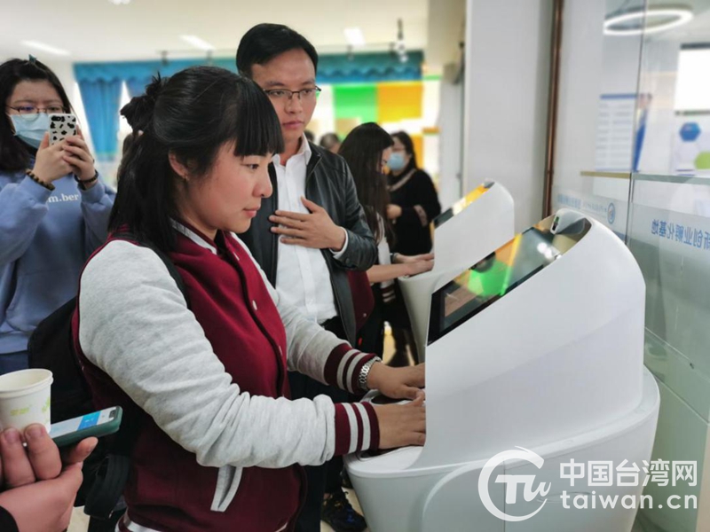 同学们首站来到四川中医药高等专科学校,参访创新创业服务中心,品尝该校研制的抗疫茶,体验中药做成的药包、浴包、牙膏等产品,观看该校学生文创作品,详细了解该校“创意激发、创新创业训练、创新创业实践、创业孵化”全链条创新创业孵化新模式。在服务中心的大厅内,四川中医药高等专科学校与京东联合研发的两台中医体质监测仪吸引了同学们的注意,检测仪采用中医与现代技术相结合,通过高清摄像头扫描面部、舌部等方式,进行体质辨识。“只需将手放在仪器上,两分钟就能收到身体报告,真的太神奇了。”台湾学子张金梅一边在手机上查看检测报告,一边发出惊叹。