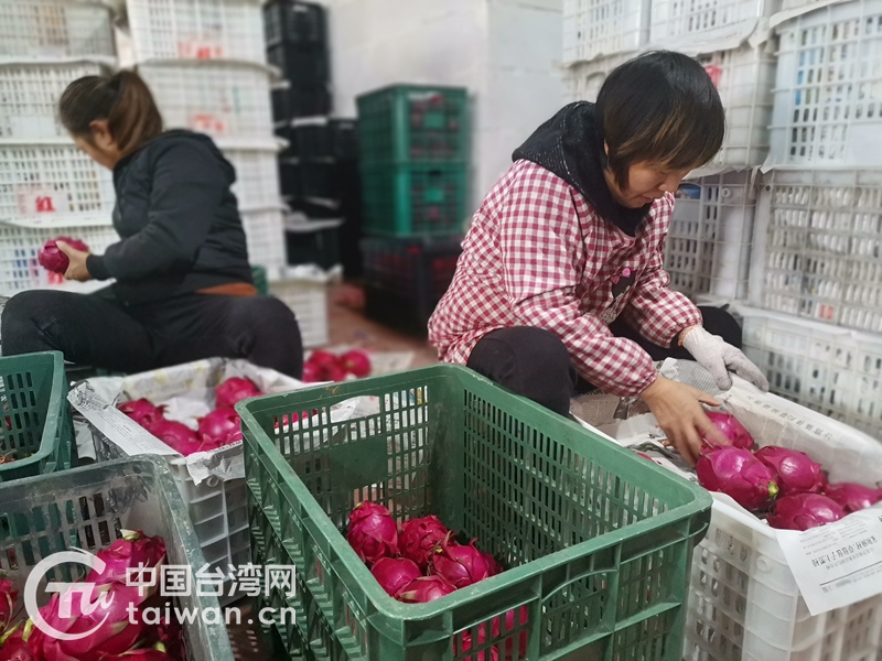 “老家的同行说,因为效益不好,他们已经把树砍掉改行了,而在大陆这边,市场很大,我种的火龙果一点都不愁卖。”他说。