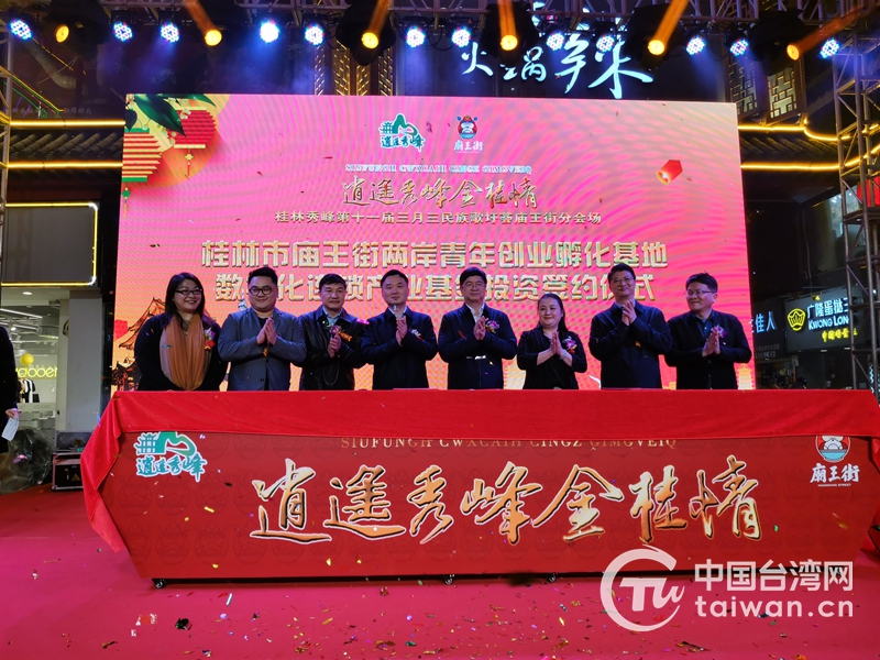 中国台湾网4月16日讯 广西桂林市庙王街两岸青年创业孵化基地数字化连锁产业基金投资签约仪式近日在桂林举行。上海引溪嘉汐企业管理合伙企业将投资1.6亿元人民币,以资金加数字化投资的方式投入庙王街经营团队,协助庙王街在未来两到三年间以全新的形象走入资本市场。桂林市委常委王建毅、广西台办二级巡视员农宝兴以及上海引溪资本创始人许港城、上海市台协连锁工委会总干事苏正贤等参加有关活动。