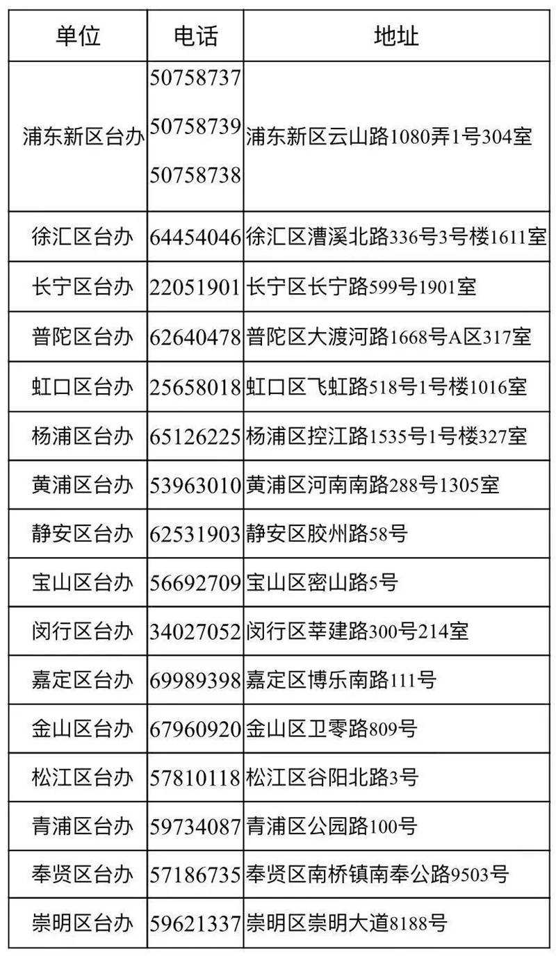 附:各区台办联系方式