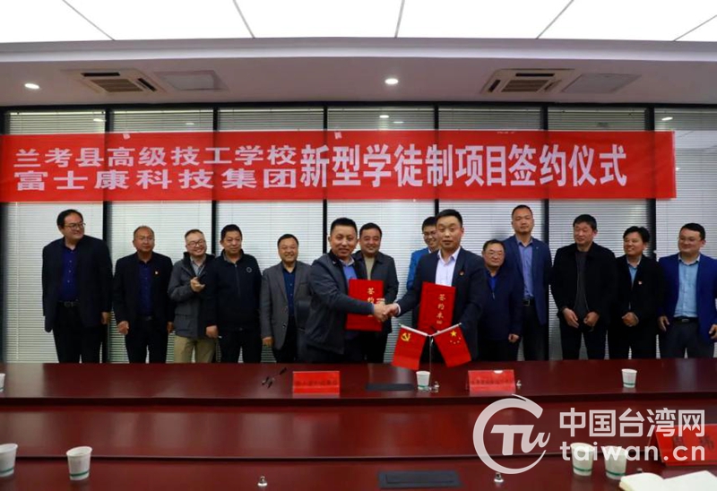 中国台湾网4月19日讯 为进一步提升员工综合技能水平,加快知识型、技能型、创新型人才队伍建设,实现“招工即招生,入企即入校”双师育人的共赢局面,富士康兰考科技园日前与兰考县高级技工学校签约,进行新型学徒制校企合作。
