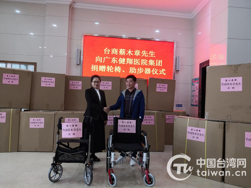 中国台湾网4月19日讯 日前,顺德台商蔡木章将10辆轮椅、16台助步器捐献给了禅城区祖庙街道兰桂社区、云浮市郁南县通门镇顺塘村,以及广东健翔医院养老院,用来帮助行动不便的群众。