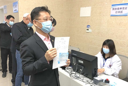 中国台湾网4月20日讯 4月19日上午,全国台湾同胞投资企业联谊会会长李政宏等来到上海市嘉定区马陆镇社区卫生服务中心戬浜分中心,接种了新冠疫苗。