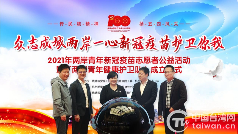 据了解,本次活动由钱塘区党群工作部、区团工委、杭州台湾学生志工队主办,并获得了区教育与卫生健康局、下沙街道的支持。活动当天,在浙台青、台湾大学生与杭州市钱塘区青年结对成立“两岸青年健康护卫队”,并共同发起“2021年两岸青年新冠疫苗志愿者公益活动”,以“众志成城、两岸一心、新冠疫苗、护卫你我”为口号,旨在提升全民疫苗保障服务水平,共同为防疫工作出一份心力。