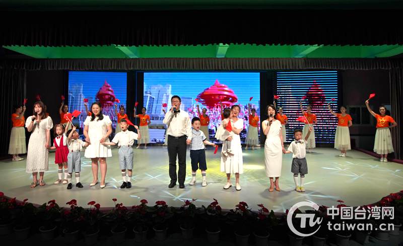 中国台湾网5月19日讯 “我和我的祖国,一刻也不能分割。无论我走到哪里,都流出一首赞歌……”伴随嘹亮的童声,四川乐山两岸婚姻家庭代表缓缓走上舞台,共同唱响《我和我的祖国》,拉开了乐山市“礼赞建党百年 家庭逐梦未来”5.15国际家庭日主题活动的序幕。