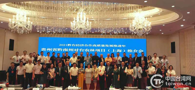 中国台湾网6月25日讯 “2021黔台经济合作高质量发展推进年 贵州省黔南州对台农林项目推介会”6月22日在上海成功举办。贵州省委统战部副部长、省台办主任刘睿,上海市台办副主任李骁东,上海市台协会长、竞衡集团董事长张简珍出席并致辞,黔南州副州长张绍川作黔南投资环境总体推介,黔南州农业农村局及林业局分别做农林产业专项推介。黔南州委统战部及黔南州12县区统战、投促部门领导同志与上海40余位台商齐聚一堂,共谋合作。