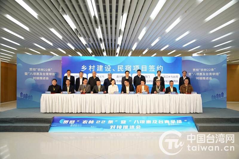 2021年4月17日,浙江省举办贯彻“农林22条”暨“八项惠及台青举措”专场对接推进会。来自长三角、珠三角及省内的台商台青与浙江30多个乡村、民宿建设项目代表进行对接,现场完成项目签约。同时,浙江各部门单位也积极整合资源,助力台青参与乡村合作项目,省文旅厅再推出可供台商台青参与的民宿合作项目11个,省农业农村厅推出可供台商台青参与乡村建设的村庄55个、合作项目58个。“浙江在美丽乡村建设方面能提供广阔市场空间,而台湾在农林、乡村建设方面有值得学习的经验,双方充分发挥互补优势,将为深化乡村农林建设合作提供更坚实的基础。”省台办相关负责人说。