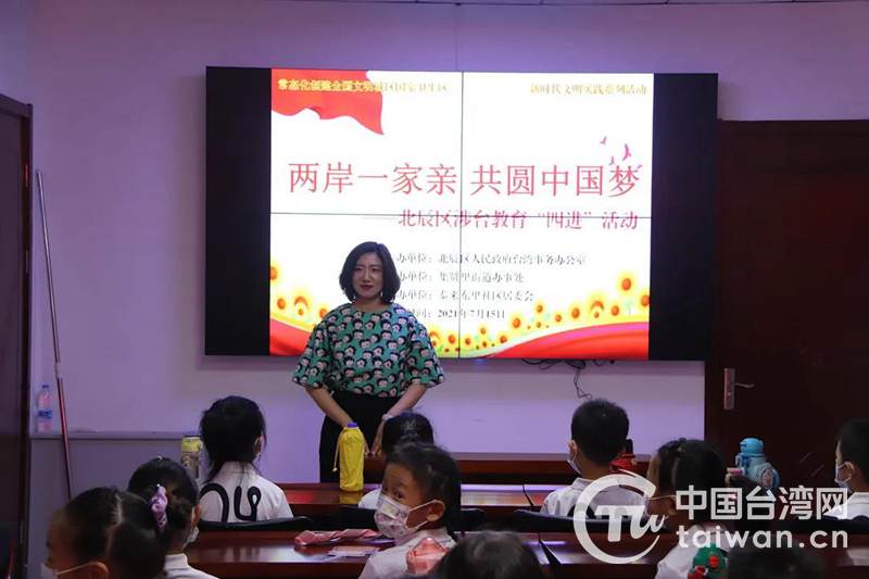 中国台湾网7月22日讯 近日,天津市北辰区台办与集贤里街道办事处在泰来东里社区新时代文明实践站联合举办了“两岸一家亲 共圆中国梦”青少年涉台教育活动。