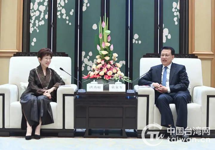 袁家军代表浙江省委、省政府对洪秀柱率团来杭参加第四届海峡两岸青年发展论坛表示欢迎,对她坚定认同和维护“九二共识”、坚守两岸统一坚决反对“台独”的政治主张表示赞赏。袁家军向客人介绍了浙江高质量发展建设共同富裕示范区、浙台经贸合作和交流交往等情况。他说,习近平总书记在庆祝中国共产党成立100周年大会上的重要讲话中指出,解决台湾问题、实现祖国完全统一,是中国共产党矢志不渝的历史任务,是全体中华儿女的共同愿望;要坚持一个中国原则和“九二共识”,推进祖国和平统一进程。近年来,浙江省委、省政府把促进两岸青年交流交往摆在重要位置,推动中央一系列惠台政策措施在浙江细化具体化,特别是去年发布的“八条惠及台青举措”已经落地开花,结出了一些阶段性成果。在洪主席的亲自推动和参与下,前三届论坛举办得非常成功,在两岸形成较大影响。面向未来,我们愿与洪主席一道,努力为台湾青年来浙发展提供良好环境和舞台,继续推动两岸同胞特别是青年交流交往,为促进两岸融合发展作出浙江贡献。