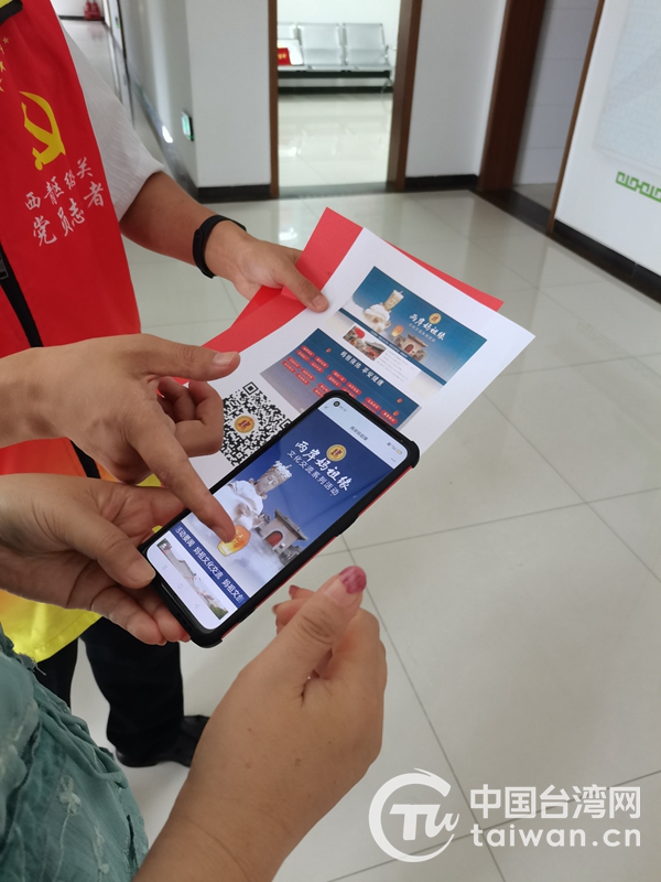 中国台湾网7月30日讯 日前,天津市西青区在张家窝镇家兴里社区举办“两岸同心 点灯祈福”主题涉台教育进社区活动。西青区委台办会同家兴里社区干部,面向社区居民群众发放统一战线条例、天津46条等政策文件和“妈祖祈福”宣传图页,宣传讲解涉台政策理论知识,现场指导居民群众为台湾同胞疫情防控在线“点灯祈福”。