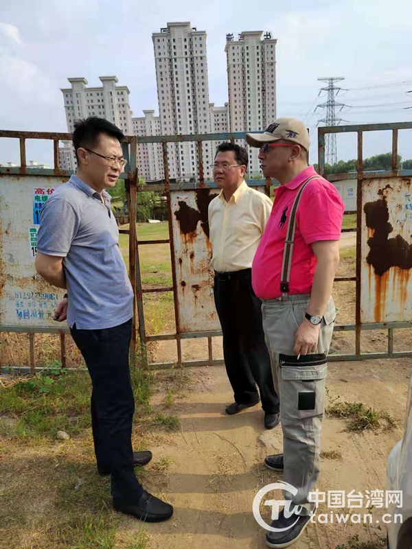 实地考察两岸“568”庄园项目建设情况并与企业负责人现场交流。(图片来源:辽宁省台办)