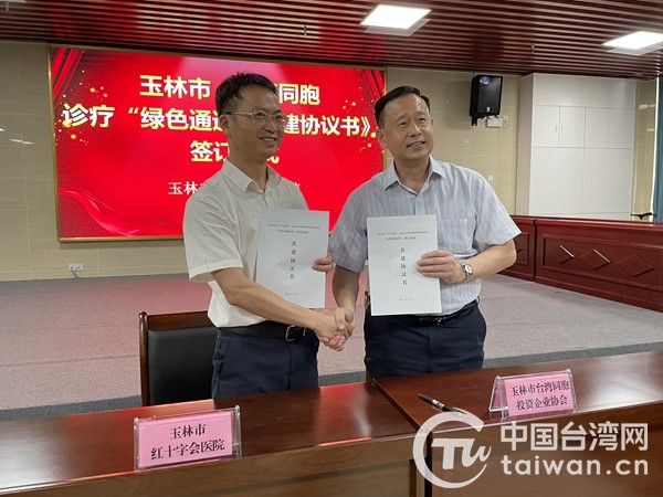 中国台湾网9月1日讯 近日,广西玉林市红十字会医院与玉林市台湾同胞投资企业协会签订《台湾同胞诊疗“绿色通道”共建协议书》,玉林市台办、玉林市卫健委相关负责人与20名台胞代表共同见证。