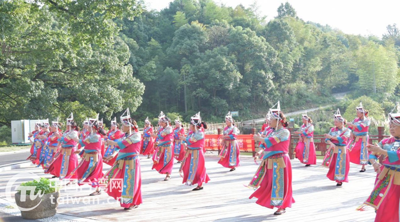 畲族乡亲载歌载舞欢迎杭州南投两地青年朋友(图片来源:杭州市台办)
