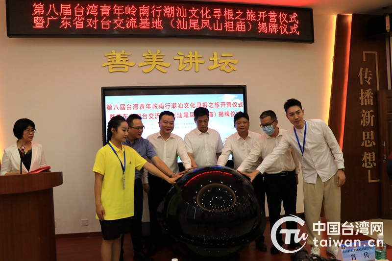 中国台湾网10月15日讯 13日上午,由广东省文旅厅、广东省海峡两岸交流促进会主办,汕尾市台湾事务局、汕尾市城区人民政府承办的第八届台湾青年岭南行潮汕文化寻根之旅开营仪式暨广东省对台交流基地(汕尾凤山祖庙)揭牌仪式在汕尾市凤山祖庙文化广场举行。广东省、市、县有关部门负责同志和两岸青年代表共60多人参加活动。
