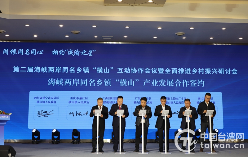 中国台湾网10月28日讯 10月27日,以“同根同名同心·相约‘成渝之星’”为主题的第二届海峡两岸同名乡镇“横山”互动协作会议暨全面推进乡村振兴研讨会在四川遂宁举行。台湾新竹县横山乡(视频)、重庆市綦江区横山镇等8个横山乡镇(街道)、乡村振兴专家、全国台联两岸经贸交流及青年工作委员会及台商代表共约160余名嘉宾参加会议。