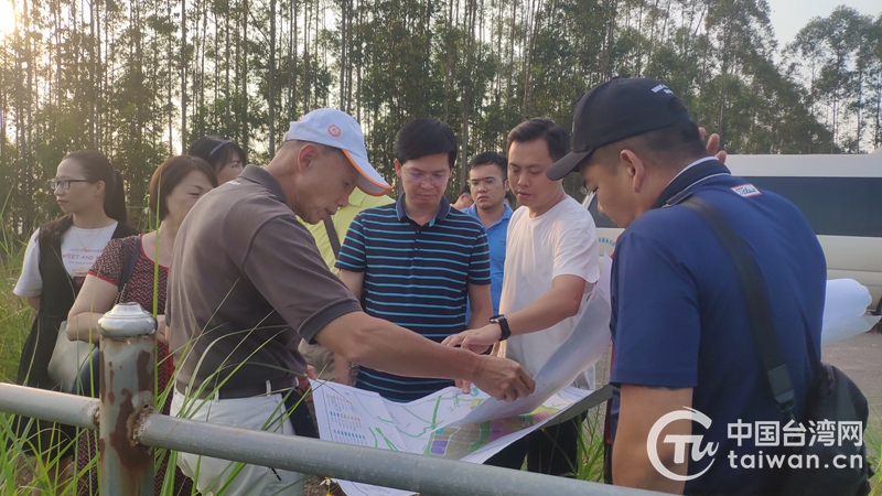 吴胜丰(前排左一)率团到贺州市考察,进行项目选址(图片来源:广西台办)