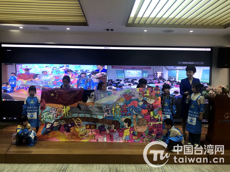 “我们这幅画画了中华景观和台湾建筑,希望通过这幅画为两岸架起友谊的桥梁。那威武的巨龙飞船,它承载着大陆与台湾的朋友们以及两岸深深的情谊,那些美丽的景观配合得如此融洽,仿佛他们并没有隔海相望,而原本就是连在一起。希望疫情过后,台湾的小朋友们能来温州,与我们共同绘画、共同学习。”来自苍南县第三实验小学的小画家们在分享中表达着他们美好的愿望。