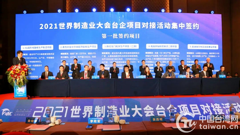 中国台湾网11月25日讯 日前,在安徽合肥举办的2021世界制造业大会台企项目对接活动上签约制造业台资项目75个,投资额达329.4亿元人民币,主要集中在新一代信息技术、节能环保、生物医药、新材料、新能源汽车等“十大新兴产业”。
