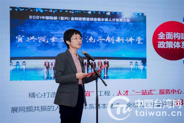 宜兴市委常委、组织部部长沈晓萍向与会嘉宾介绍了宜兴的生态环境、历史文化和经济发展情况,详细解读了宜兴招引人才的政策措施。她指出,宜兴作为两岸交流交往最活跃的地区之一,积极发挥对台工作资源特色优势,重点依托国家级海峡两岸交流基地——宜兴陶博馆和省级对台交流基地——佛光祖庭大觉寺等平台,先后组织开展一系列两岸经贸文化交流活动,进一步密切了宜台两地交流合作、促进了民众往来情感融合,为助力两岸文化交流、促进融合发展作出了应有贡献。热忱欢迎大家到宜兴就业、创业、生活。