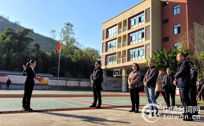 张军(左二)调研台胞援建宜宾市珙县周村小学(图片来源:四川省台办)