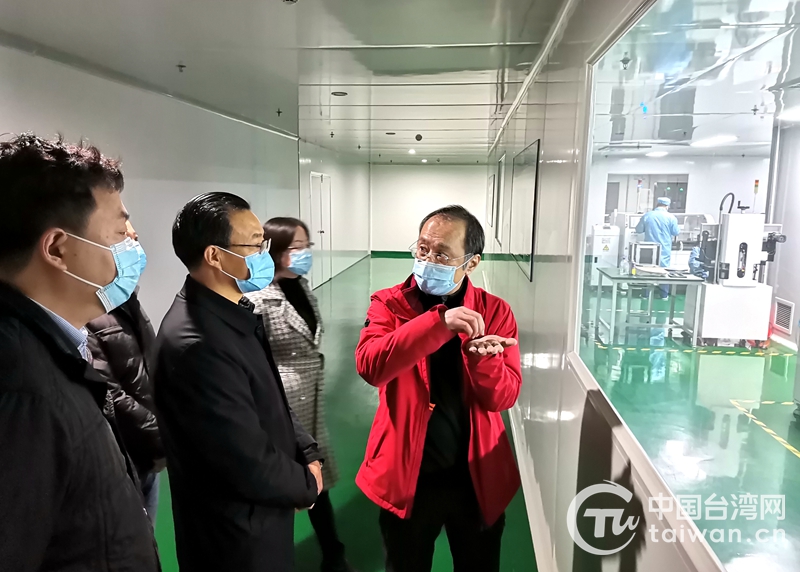 张军(左二)调研宜宾昌鑫科技有限公司(图片来源:四川省台办)