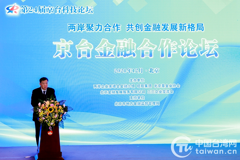 中国台湾网12月30日讯 2021京台金融合作论坛于12月29日在京举办。论坛以“两岸聚力合作 共创金融发展新格局”为主题,设北京和台湾两个会场,来自银行、证券、保险、基金、金融科技等多个领域的嘉宾与会,就进一步扩大金融业开放、深化资本市场合作、推动金融创新发展、金融服务实体经济等进行深入探讨,共话金融合作新空间。
