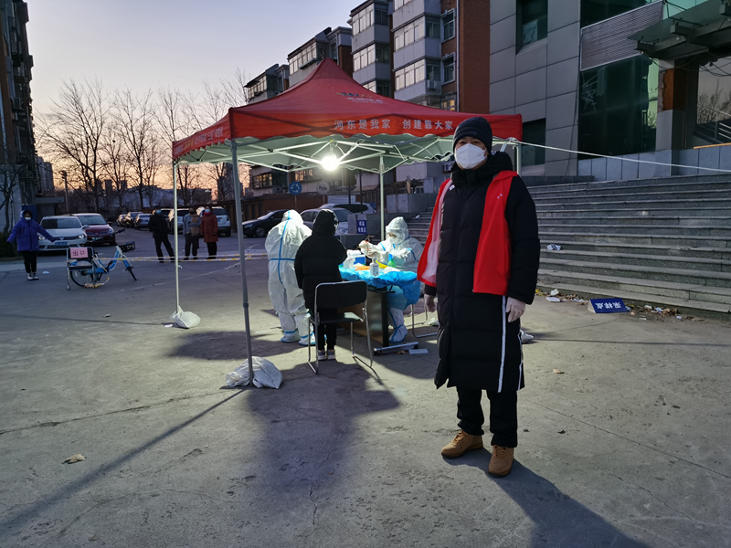 此次战“疫”打响后,刘晟同志作为一名志愿者,10日下沉社区,协助做好居民核酸检验工作。他深有感触地说,看到社区工作者自始至终奔波在第一线,坚守岗位,值得所有人尊重,能与他们肩并肩携手作战,即使天寒地冻,也能感到一股暖意。哪有什么岁月静好,不过有人替你负重前行。感谢所有社区工作者的辛苦付出。希望天津尽快战胜疫情。加油,天津!