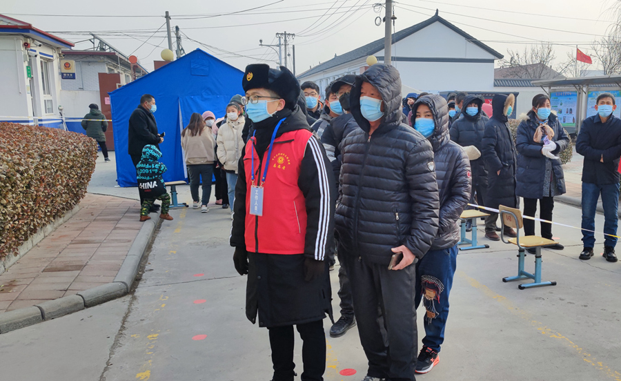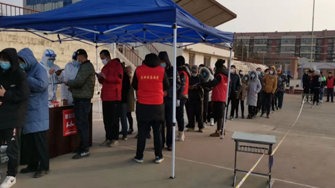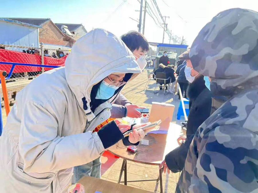 1月9日凌晨四点接到区委通知,东丽区台办全体人员在夜色中迅速行动,作为志愿者到金桥街龙泉里社区报到,在“大筛”现场一直忙碌到晚上11:30未归。