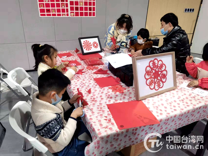 在家长的帮助下,两岸家庭的孩子们写对联、画年画、剪窗花,共同传承中华传统文化,迎接农历新年的到来。(中国台湾网南京市江宁区台办通讯员 周勇)