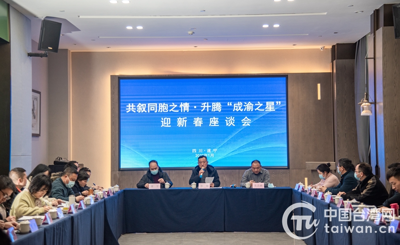 中国台湾网1月24日讯 近日,四川省遂宁市台办组织在遂台资企业负责人、台胞台属和两岸婚姻家庭代表及各级台办负责同志召开学习十九届六中全会和省委十一届十次全会主题宣讲会暨“共叙同胞之情·升腾‘成渝之星’”迎新春座谈会。