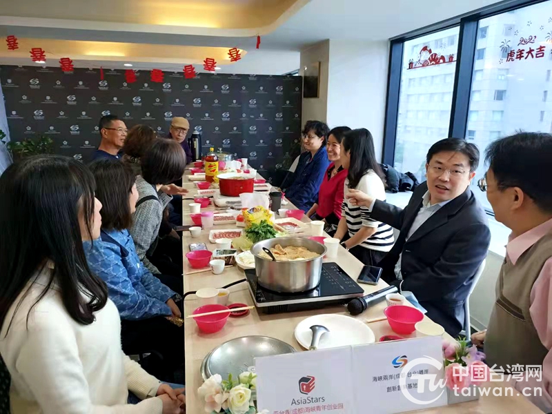 中国台湾网1月27日讯 1月25日的海峡两岸(成都·台北)离岸创新创业基地川味飘扬,热闹非凡。由成都(星点)海峡两岸新经济创业园、亚台青(成都)海峡青年创业园及海峡两岸(成都·台北)离岸创新创业基地共同举办的“台北·成都·重庆台青云火锅围炉会”通过云端分别在成都市、重庆市和台北市联线同步展开,80多位台湾青年企业代表和行业专家欢聚一堂,共迎农历新年,共话川渝创投发展。