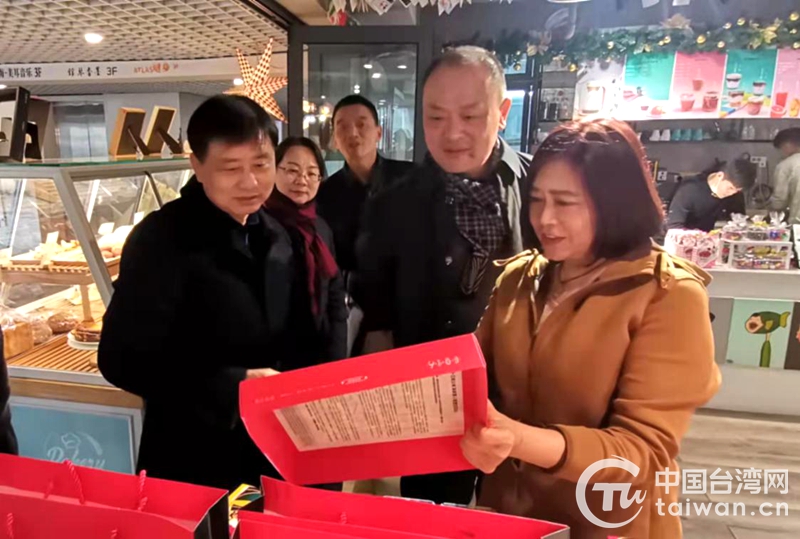 袁明慰问张平宜,了解思乐玛塔烘焙厨房产品(图片来源:四川省台办)