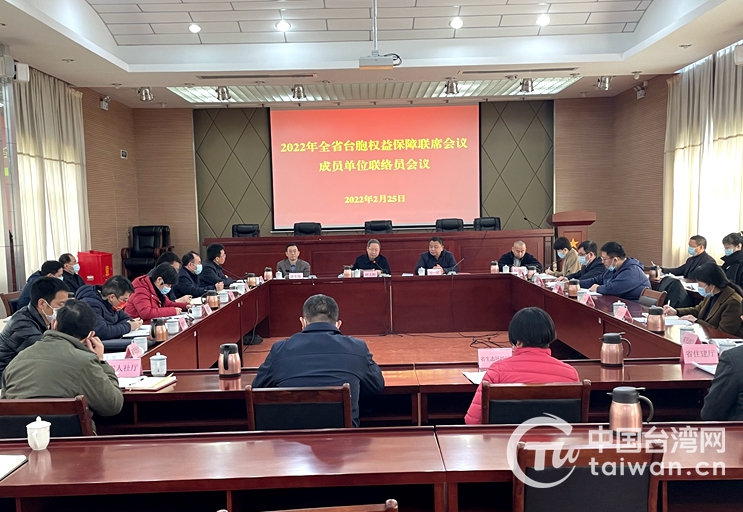 中国台湾网2月28日讯 福建省台胞权益保障工作联席会议成员单位联络员会议近日在福州召开。会议通报2021年以来全省台胞权益保障工作和涉台信访纠纷化解情况,深入分析当前对台工作形势,研究部署2022年台胞权益保障工作。福建省高院、省检察院、省司法厅和省税务局分别介绍本单位开展台胞权益保障工作的经验做法。福建省台港澳办副主任钟志刚参加会议并讲话。