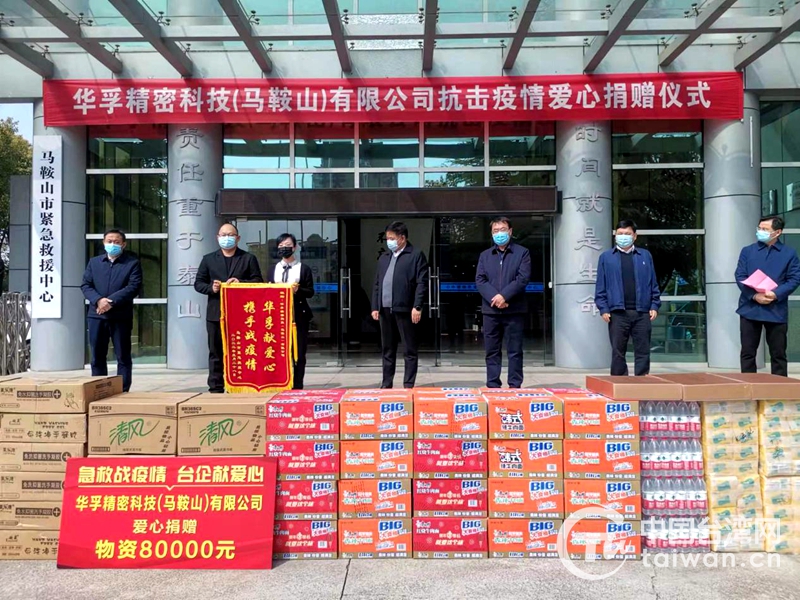 中国台湾网3月31日讯 3月28日,台企华孚精密科技(马鞍山)有限公司向马鞍山市紧急救援中心爱心捐赠价值8万元抗疫物资,助力全市抗击疫情。