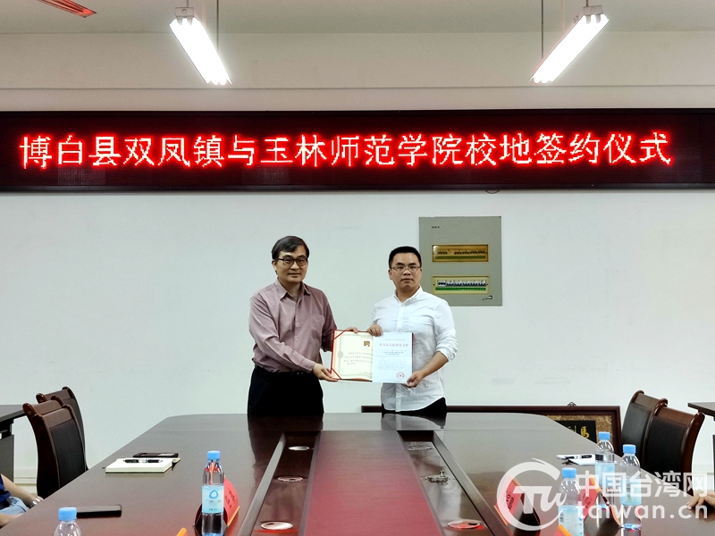 中国台湾网4月28日讯 近日,广西玉林师范学院与玉林市博白县双凤镇举行校地签约仪式,聘任在玉林师范学院任教的台湾博士辜文彦为博白县双凤镇高级农业科技顾问,重点为茶产业发展提供技术指导。