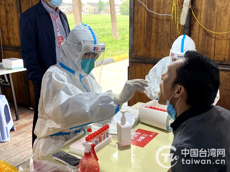 台青苏咏宽医生在进行核酸采集工作(图片来源:南京市台办)