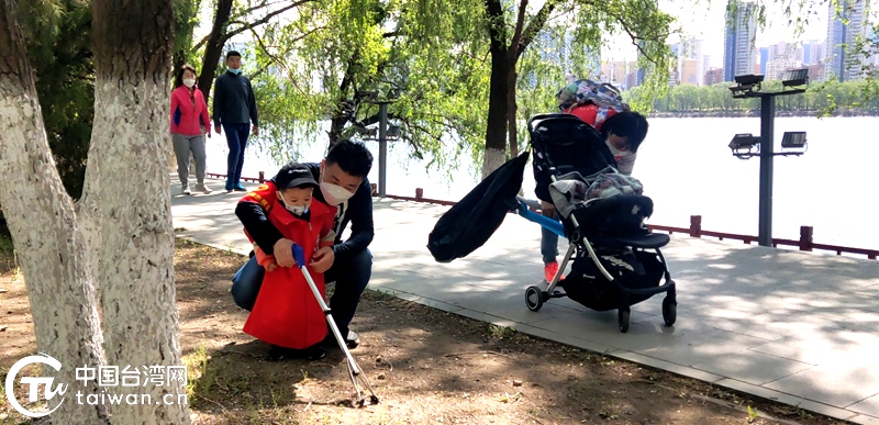 台胞郭照宇的家庭是两岸婚姻家庭,他是携全家来参加活动的,一家三口穿上红马甲认真地忙碌起来,在他的引领下2岁大的儿子也有模有样的拾捡垃圾来。郭照宇兴奋地表示:“我是第一次在沈阳参加这样的志愿活动,沈阳就是我的家乡,我们应该以实际行动维护好沈阳这么美的环境,不光是我,将来也要让我的孩子积极参与沈阳的志愿服务。”
